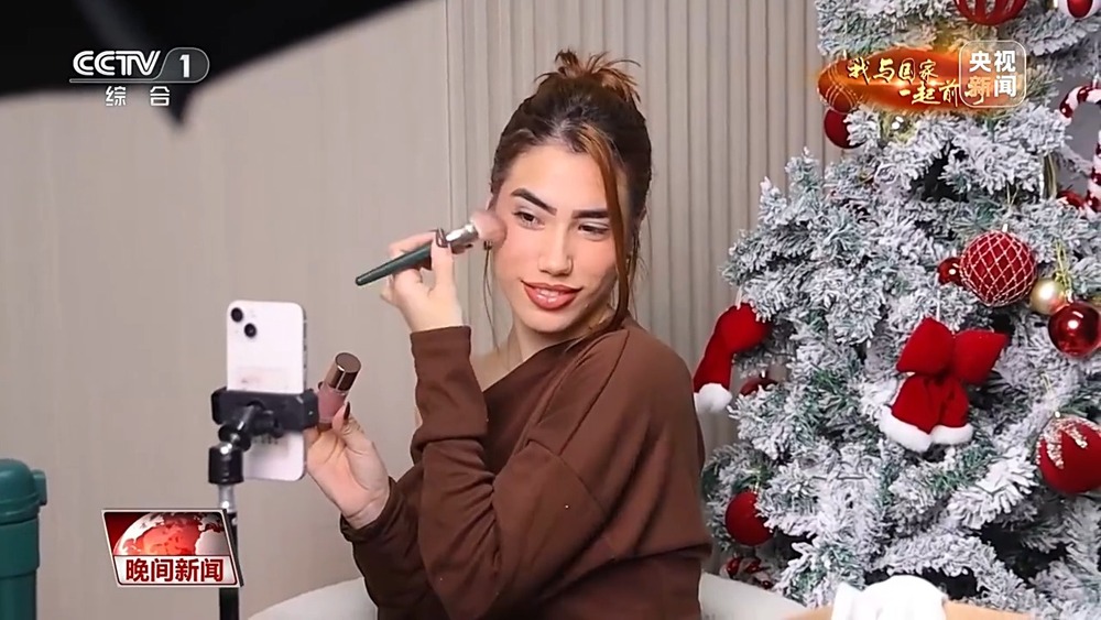 在产品展示区,一位精通7国语言的马来西亚主播,正在录制短视频;一旁的摄影棚内,工作人员正在为一款全新上市的彩妆产品拍摄素材;而隔壁,一位摩洛哥女孩正忙着直播带货。