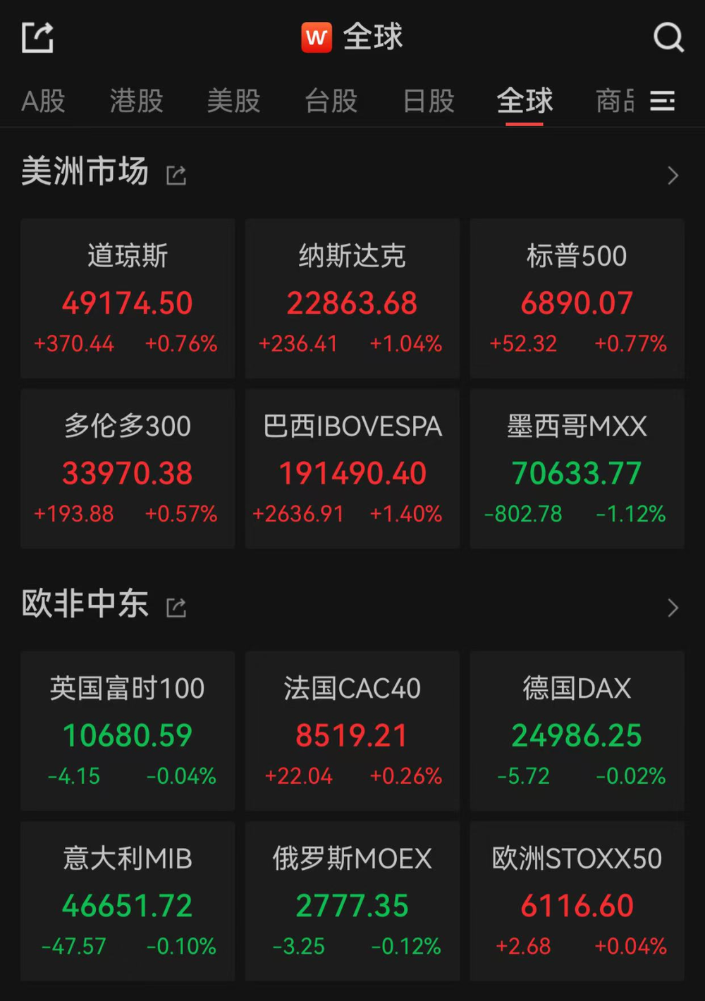 当地时间2月24日,美股三大指数集体上涨,道琼斯工业指数、纳斯达克指数、标普500指数分别上涨0.76%、1.04%、0.77%。欧洲主要股指涨跌不一。