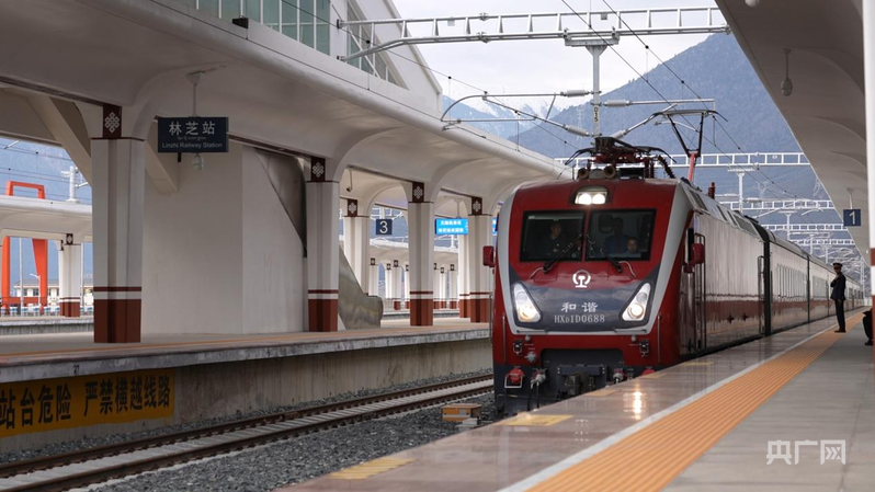 桃花节旅游专列抵达林芝(总台西藏总站张文瑞 拍摄)