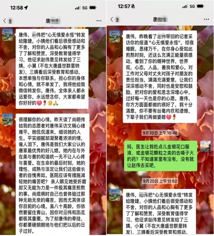 唐伟去世前10天与婆婆交流、道别的聊天记录 受访者家属提供