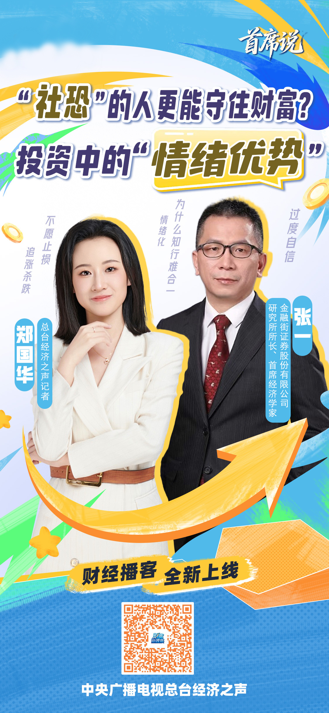 面对涨跌,投资者众生相浮现:有人急于“获利了结”,有人坚信“牛市不言顶”,还有人选择暂时“佛系”。每一次指数跃升,都不仅是数字的跳动,更是一面映照人性的镜子,让我们在资本的激荡中,看见自己,也看见时代。本期播客节目我们与金融街证券股份有限公司研究所所长、首席经济学家张一一起聊聊人性、聊聊心理、聊聊投资里的行为陷阱。
