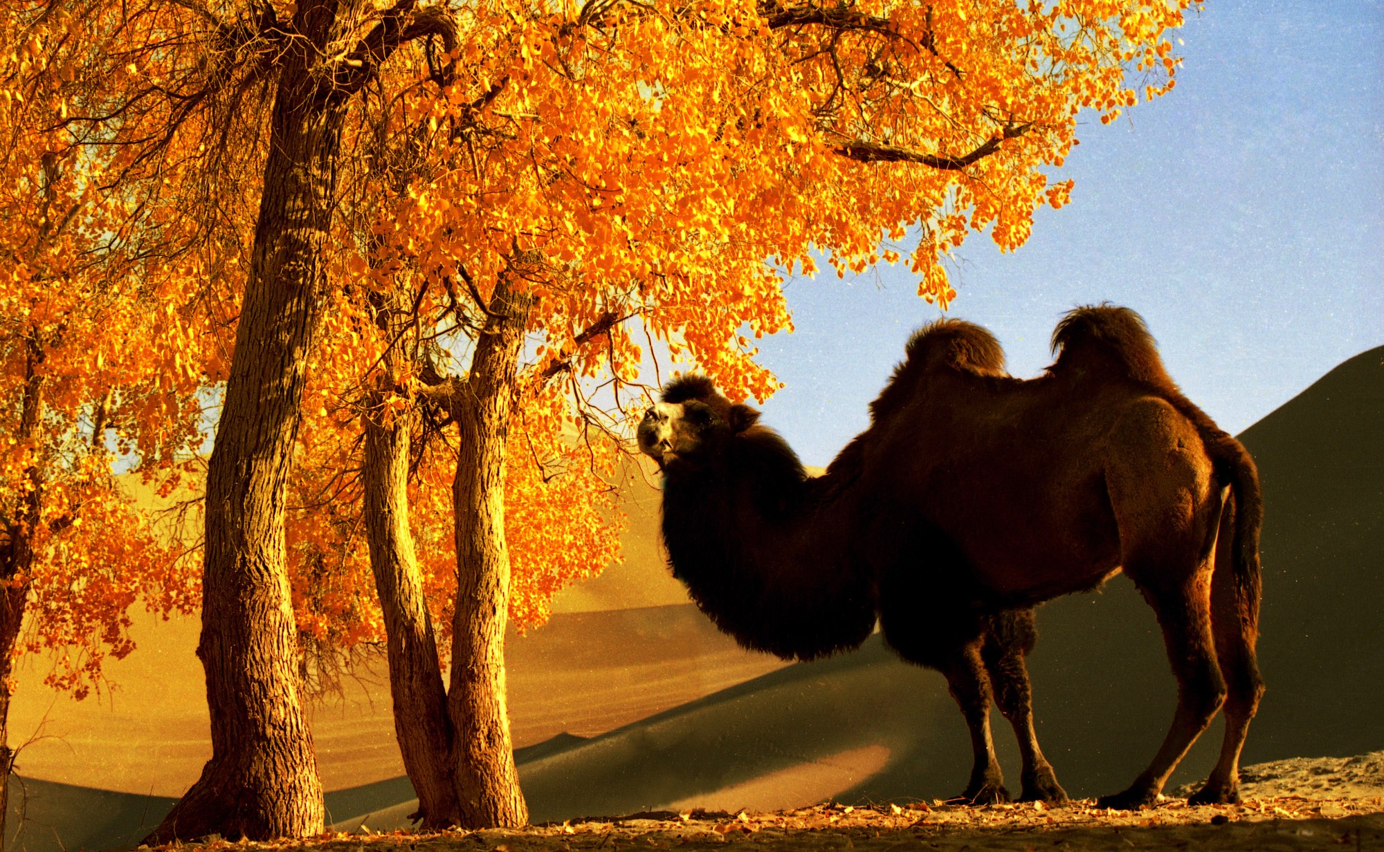 如果时间允许,一定要去敦煌周边的胡杨林看一看。金秋时节,胡杨林换上金黄盛装,与蓝天白云、沙漠戈壁相映成趣。湖面倒影美如油画,是摄影爱好者的天堂。