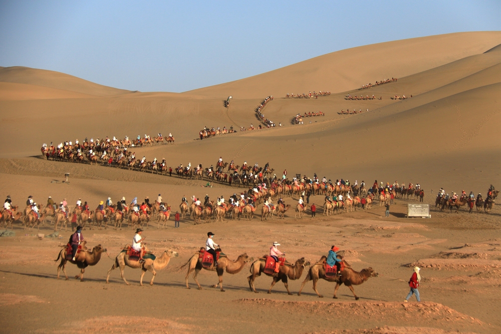 鸣沙山月牙泉景区讲解员黄佳敏介绍:“今年秋季,游客可以乘骆驼沿4公里路线穿行沙丘,耳畔驼铃与秋日风声交织,仿佛重现丝路商旅场景。喜欢刺激的游客还能尝试滑沙、沙漠越野车、空中滑翔机等项目,在沙粒飞溅中感受秋日大漠的动感活力。游客还可以在落日余晖洒满沙山后,在泉边静赏星空渐亮,沉浸式体验‘沙水共生’的秋日秘境与壮阔,体验大漠的独特魅力。”