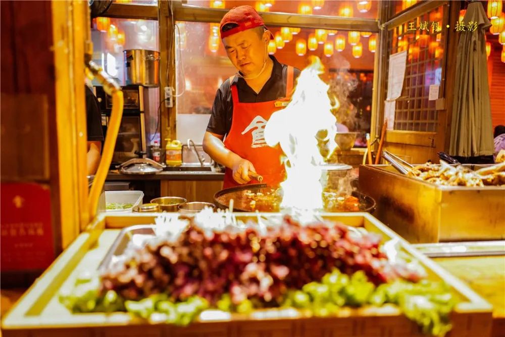 除了自然风光,敦煌的美食也不容错过。当地的驴肉黄面、羊肉粉汤、泡儿油糕等特色小吃,都带着浓浓的丝路风情。敦煌夜市是品尝这些美食的最佳去处。