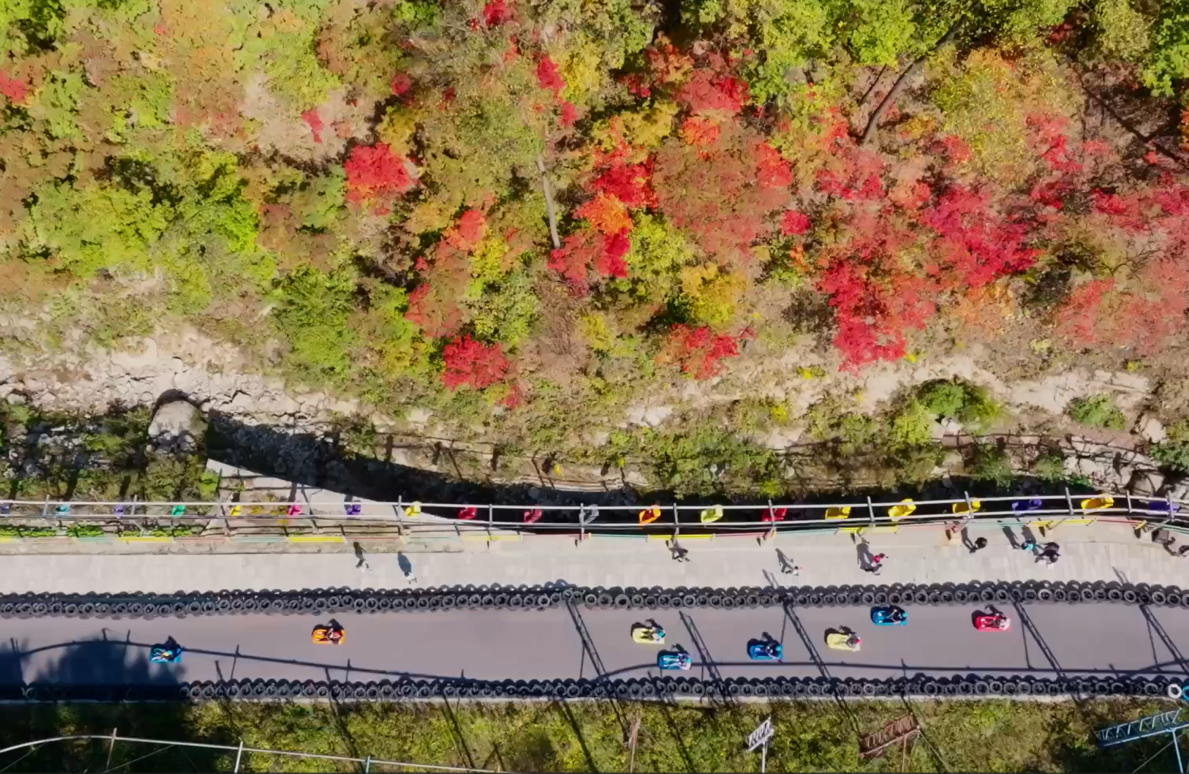 看完关门山的枫叶,如果还不够满足,可以再来到大冰沟玩一玩。这里除了传统的“静赏”以外,基于本溪山间地貌,还打造了多种山地项目,比如极速滑车、空中漂流、林间穿梭等。丰富的游玩方式不但可以让不同爱好的游客都找到专属乐趣,还能让游客在山林间和红叶来一场不寻常的“会面”。