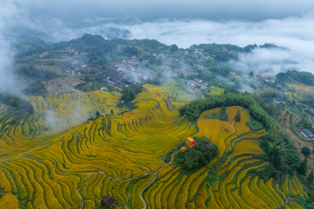 万里挑一,童话云和,来这里一览乡村振兴新画卷。这个秋天,让我们一起在稻浪云海中,聆听江南秋韵之声。(图片来源:云和县融媒体中心)