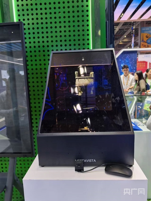 工作人员介绍:“它是用了一些特殊的负反射原理以及特殊的光学材质,现在主要是文旅展览展示,也可以用在一些教育培训的场景,或者一些零售商品的展示。我们也是希望能够通过进博会,把我们最新的成果、设备,可以代表中国新的显示技术呈现给大家。”