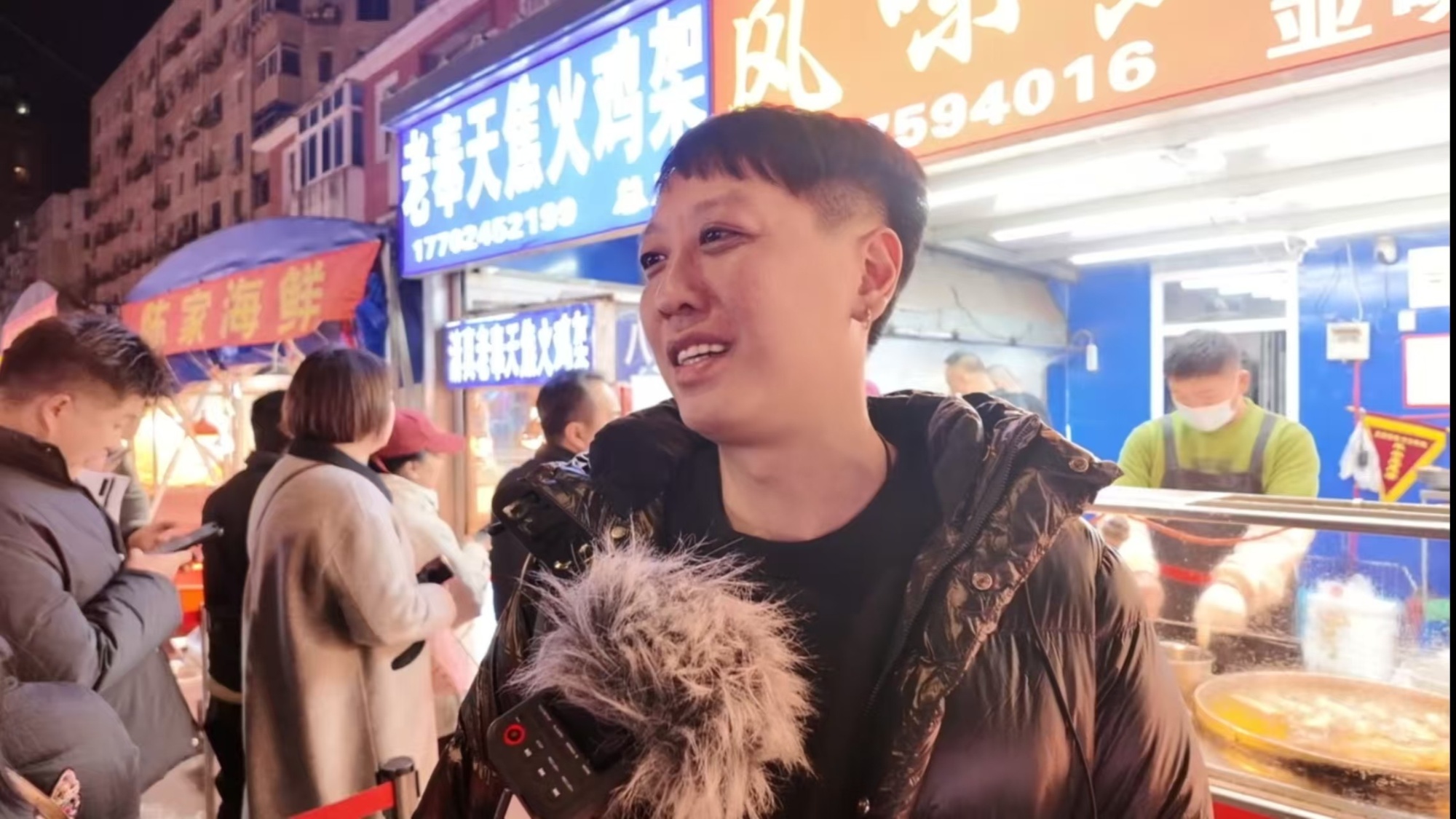 烤鸡架网红店主白瑞超(记者赵巍 摄)