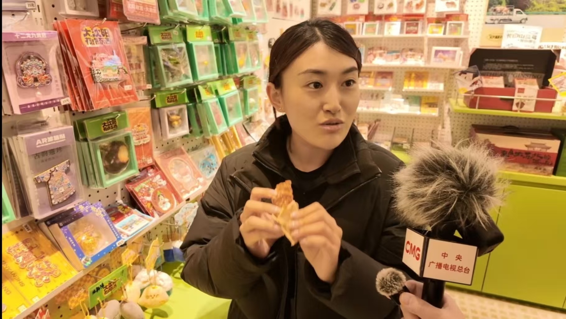 手机那头的朋友已经挑花了眼,黄桃罐头、搓澡巾、酸菜饺子、铁锅炖……可她最想要的烤鸡架冰箱贴已经售罄。文创店店员介绍:“鸡架冰箱贴是两款,都卖得挺好,都缺货了。”