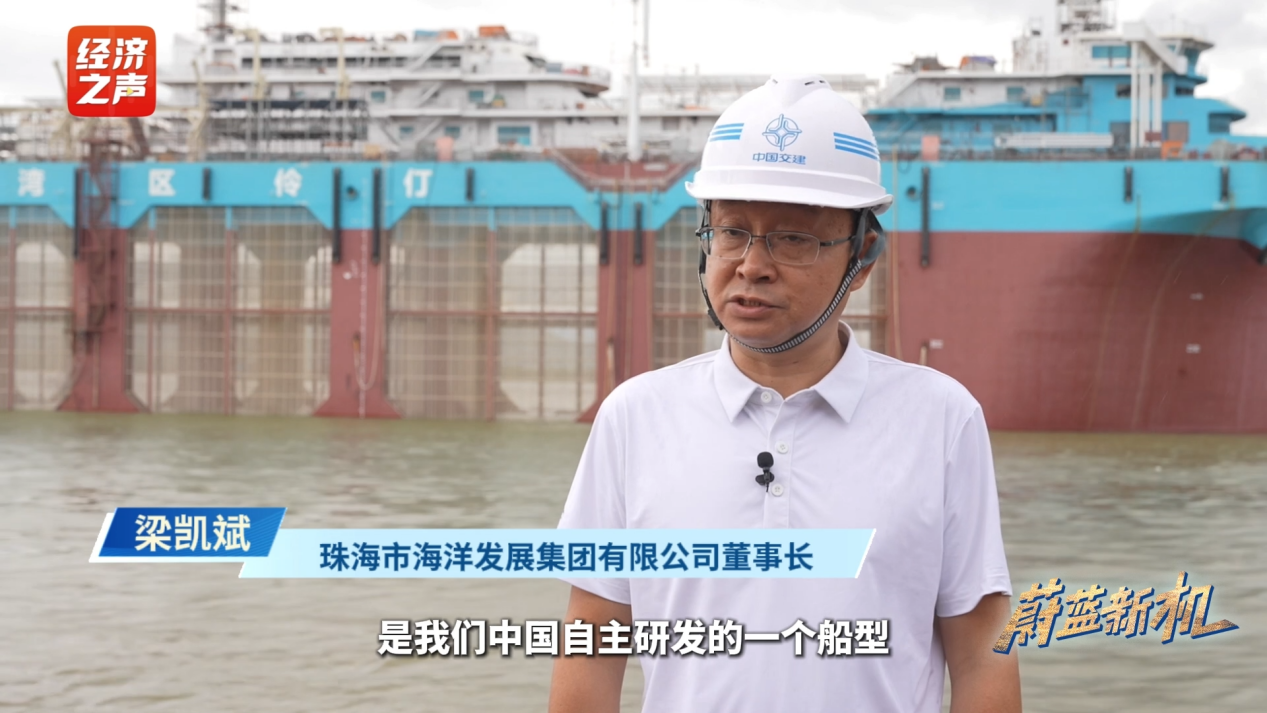 如果说伶仃牧场是固定的“海上田园”,那么“湾区伶仃号”养殖工船就是追着洋流跑的“移动牧场”。它的出现让“耕海牧渔”从理想变成了现实。珠海市海洋发展集团有限公司董事长梁凯斌介绍:“‘湾区伶仃号’是我们中国自主研发的一个船型,其国产化率达到了99%,是一艘水体自然交换型的养殖工船,这是在全球的首创。我们希望它不单单是给中国,也给全世界在深远海工船养殖上能成为一个范例。”