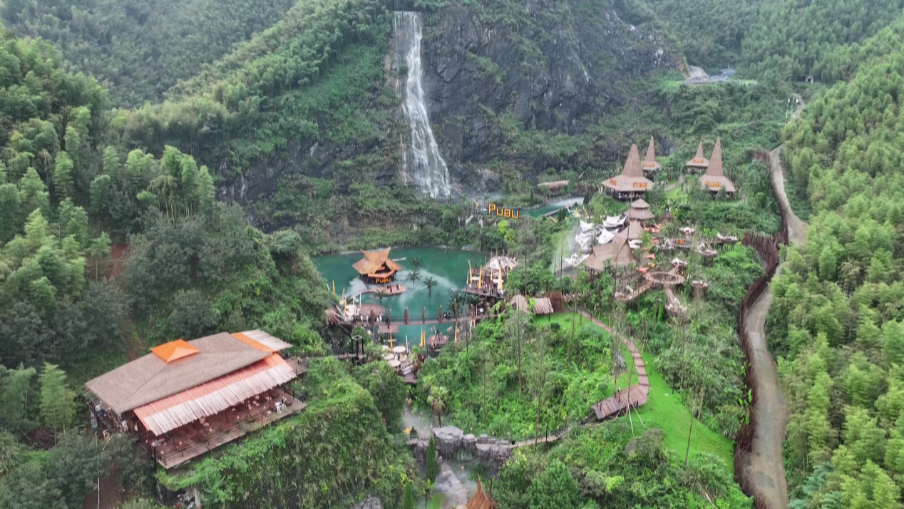 沿着余村的盘山公路往里走,拐个弯瞬间被惊艳到:几十米高的瀑布直往下冲,搭配着好看的崖壁造景,网红咖啡店就藏在旁边,游客们都在疯狂拍照——你敢信?这个爆火的“瀑布咖啡”,以前是个荒废了20年的采石场!