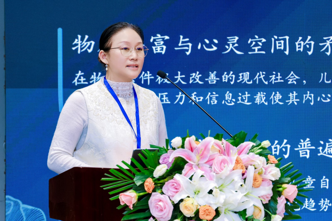 北京儿童医院妇儿中心中医科钟雨洁主任医师以“国医育人 家育未来——中医文化促进儿童青少年心理健康”为主题,分享了中医“身心合一”理念在青少年心理滋养中的实践应用。她指出,中医文化作为完整的“人学”与“育人之道”,其“整体生成观”“天人相应”观为破解青少年心理健康困境提供了独特视角——青少年情绪问题并非孤立的心理“故障”,而是身体、情绪、认知、环境等多系统失衡的体现,且与自然节律密切相关。